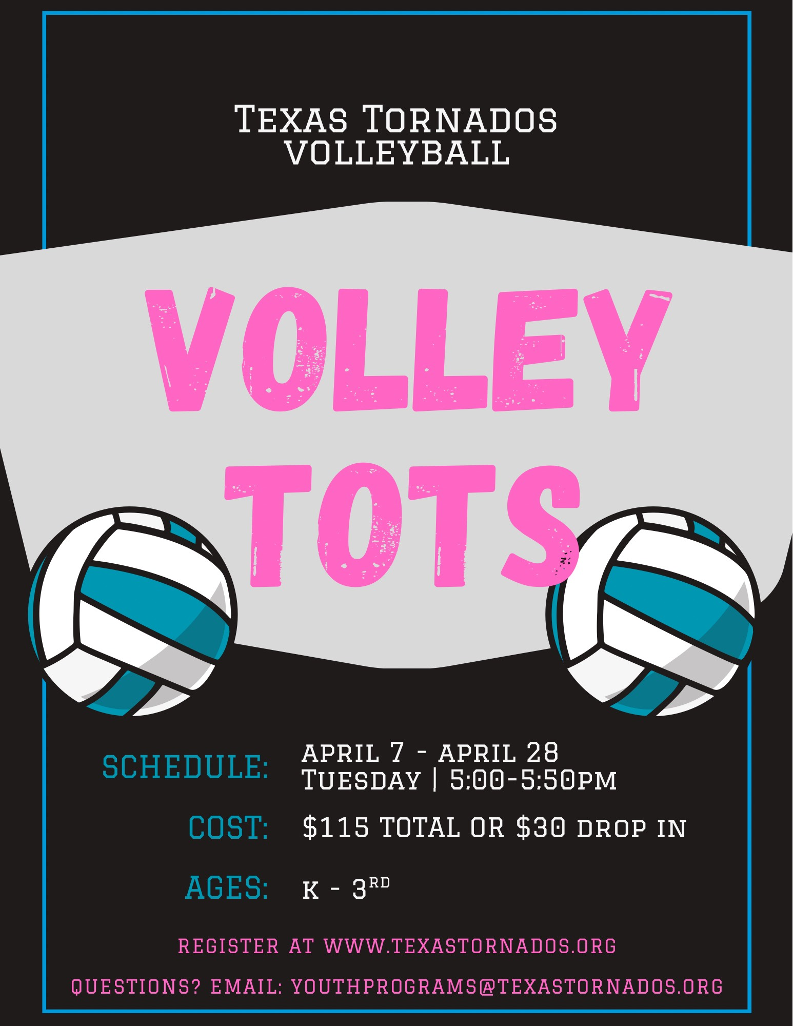 Our Twister Tots Program is the perfect entry-level volleyball experience for boys and girls in Kinder–3rd Grade!